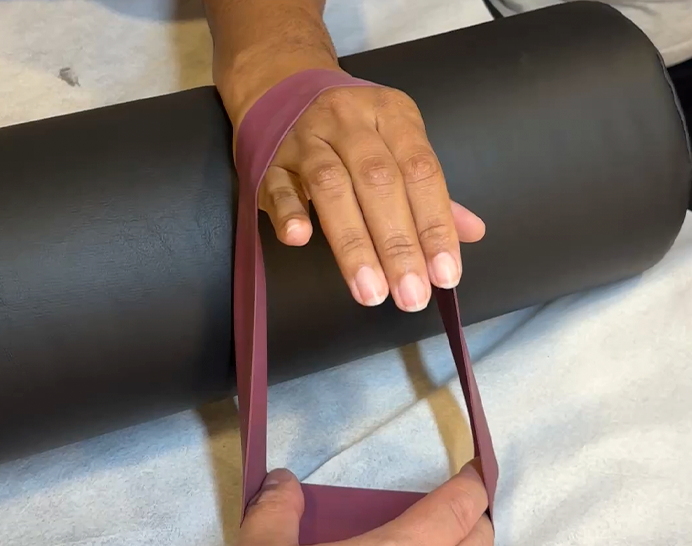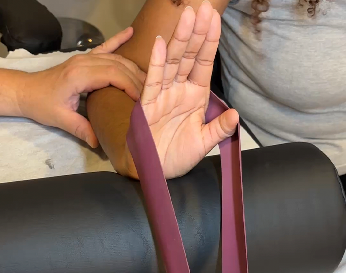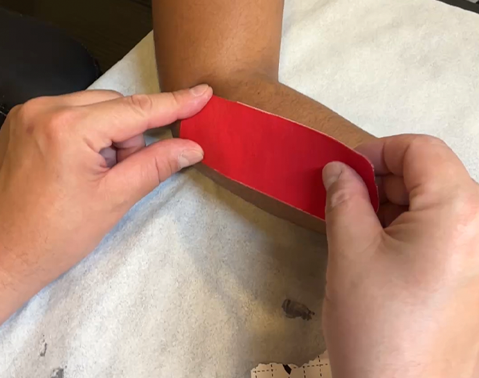 Colocação de bandagem elástica funcional para aumento do conforto pós tratamento.