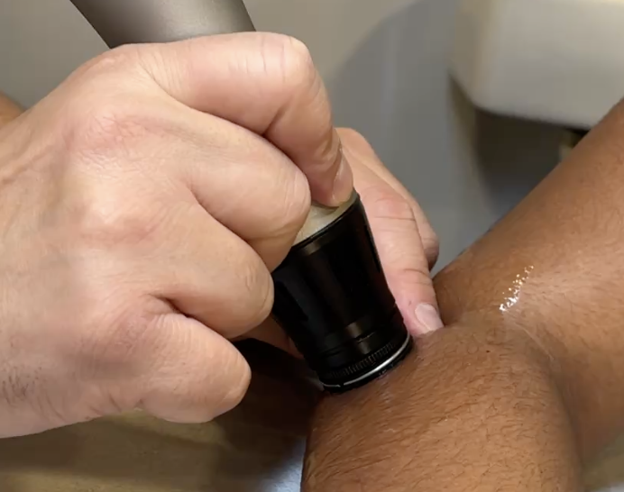 Tratamento local com ondas de choque na redução da dor e regeneração tecidual.